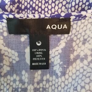 Aqua romper, gently used, no holes tears stains or snags. Blue and white snake print lined romper. V-neck with snap closure, adjustable spaghetti straps, pockets.