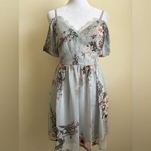 New Small Lulus Verona Light Blue Floral Off the Shoulder Lace Dress