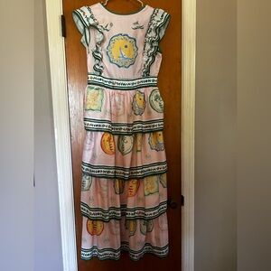 Gorgeous Mulberry and King dress in a soft pink — size Medium. Features romantic ruffle details and a flattering open back design. Light, breezy, and perfect for vacation, summer events, or a day out by the water.
