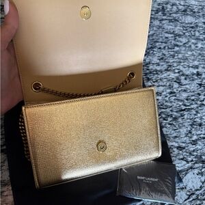 Saint Laurent YSL KATE SMALL TASSEL IN METALLIC LEATHER