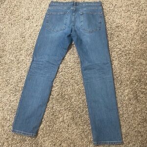 Medium Wash: In excellent used condition, no visible flaws. Slim cut, straight leg, medium wash jeans in size 32x30. Everlane brand, mid rise. Measured at 28.75" inseam, 31.5" waist, 9.5" rise (approx.).