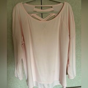 Hard side spinner pink suitcase, 8 wheels, 22”H x 14”W x 9”D, expands to 11.5”, bookcase style unzipped, two zippered compartments on one side, snap closure on the other side, small scuff marks on top (see pictures), top and side retractable handles, push button locking handle, lightweight, durable