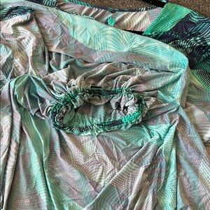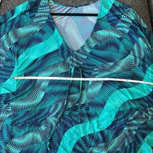 Stylish kaftan with a teal and black pattern. Perfect for a chic look. Great beach coverup