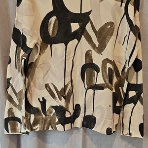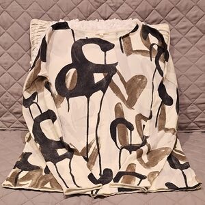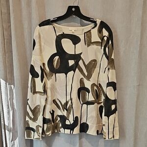 Lisa Todd Abstract "Love" Cream and Black Long Sleeve Cotton/Cashmere Sweater