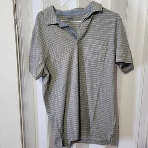 Elevate your casual wardrobe with this stylish gray striped polo shirt. Perfect for any occasion, this shirt offers comfort and a classic look.
