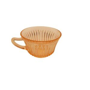 This delicate pink depression glass cup from Anchor Hocking's Queen Mary collection adds vintage charm to your table setting. Perfect for collectors or as a unique gift for tea enthusiasts.