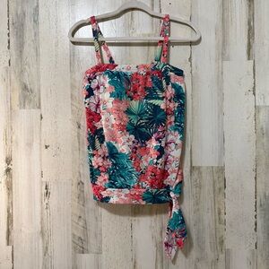 Beach House Pink Green Blue Textured Floral Relaxed Fit Tie Front Bikini Top
