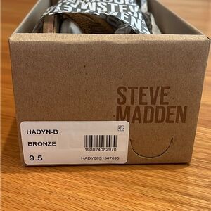 These Steve Madden gold sandals are a perfect blend of style and comfort, featuring a sleek and elegant design. The shimmering gold finish adds a touch of glamour, making them ideal for both casual outings and special occasions. With their comfortable fit and chic appearance, these sandals are a must-have addition to your footwear collection.
