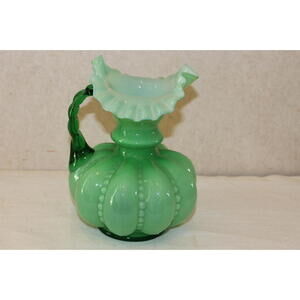 Vintage Fenton Green Beaded Melon Pitcher – Large 8 Inches