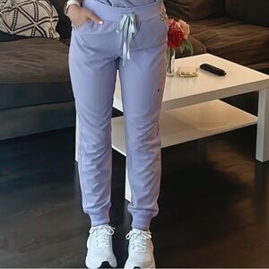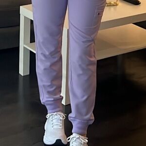 Figs lavender dew high waisted Zamora joggers. Still in great condition. These have a GREY waist tie NOT the lime green. Pictures of the actual pants in last two slides. Let me know if you have any questions!
