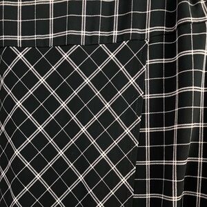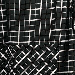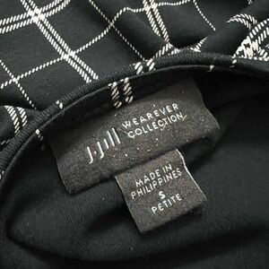 This J. Jill dress features a sophisticated black and white windowpane check pattern, perfect for work or casual settings. The sheath style with a crew neck and 3/4 sleeves offers a streamlined silhouette that flatters the figure. Its knee-length hemline and consistent geometric design make it a versatile addition to any wardrobe.