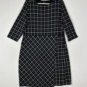 J. Jill Black and White Sheath Dress 3/4 Sleeve Crew Neck. Size SP
