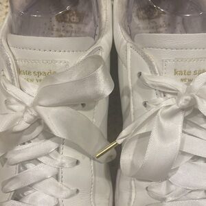 Keds Kate Spade white Sneakers Glitter and Leather Flowers at Heel Size 8 1/2