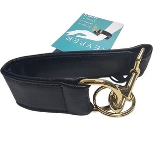 KEYPER Vegan Leather Key Ring Wristlet Black Gold Purse Diaper Bag Safety Strap