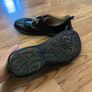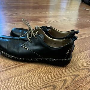 Experience comfort and style with Josef Seibel women’s black leather shoes. Perfect for any occasion. Slightly worn condition. I love these stitching! Really cute on!