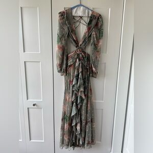 PatBO Green Halter Gown with Bishop Sleeves