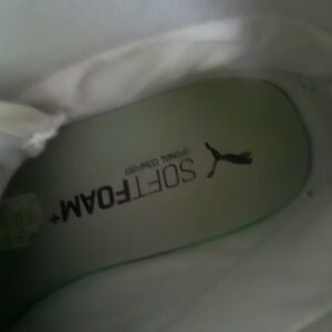 Step up your style with Puma's classic high-top sneakers, showcasing a sleek white and black design. These sneakers feature a minimalist canvas upper and a distinctive black stripe on the midsole, perfect for a casual yet stylish look.