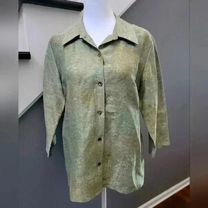 Crafted with a blend of acrylic, polyester, and viscose, this tight-knit sweater ensures breathability across all seasons - be it fall, spring, or winter. The shimmering accents of glitter add a touch of glamour to the solid pattern, making it a modern statement piece that's machine washable for easy care. This is in great preloved condition.