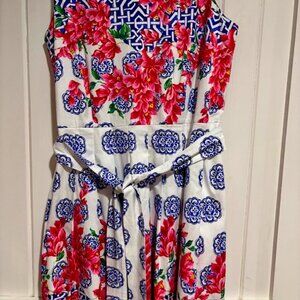 Talbots Women’s Mosaic Floral Sateen Pleated Fit & Flare Dress – Size 12 Sleeveless