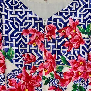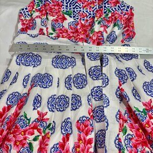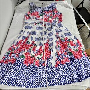 Talbots Women's Mosaic Floral Sateen Pleated Dress Fit Flare Size 12 Sleeveless