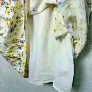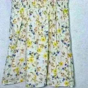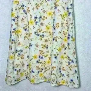 The dress features a stunning floral pattern and is made of a comfortable and breathable blend of rayon, linen, and cotton. It has pockets, and is full lined.