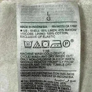 • US, SHELL: 55% LINEN 45% RAYON/ VISCOSE LINING: 100% COTTON EXCLUSIVE OF ELASTIC