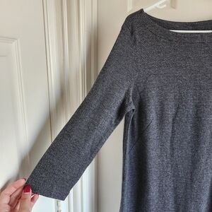 J Jill Womens Tunic Top Size S Ponte Knit Gray Herringbone Boat Neck 3/4 Sleeve