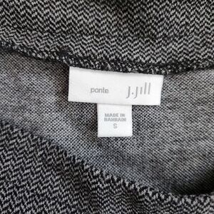 This J. Jill Women's Tunic Top in size S features a stylish herringbone pattern in gray, with a boat neck and 3/4 sleeves. Made from a comfortable blend of nylon, spandex, rayon, and viscose in a knit fabric, this blouse has a pullover closure and offers a regular fit. Suitable for travel, casual, or business occasions, this versatile top is machine washable and has a stretchy feel for all-season wear.