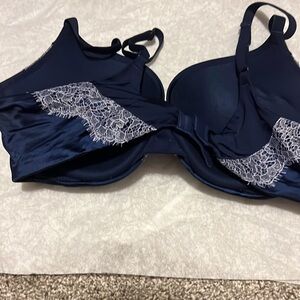 Discover the perfect blend of elegance and support with this Victoria's Secret bra, featuring a sophisticated blue and gray color palette. The delicate lace trim adds a touch of femininity, while the molded cups and adjustable straps ensure a comfortable fit for everyday wear.