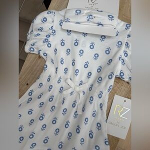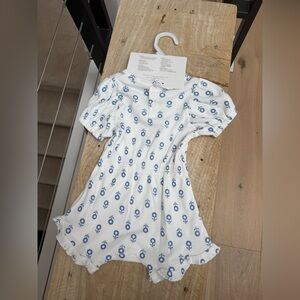 Rachel Zoe Baby Puff Sleeve Floral Romper W/ Headband White & Blue Girl NWT 6-9M