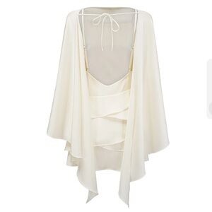 This elegant cream dress features a sophisticated layered design, perfect for any special occasion. The flowing fabric and chic style make it a must-have addition to your wardrobe.