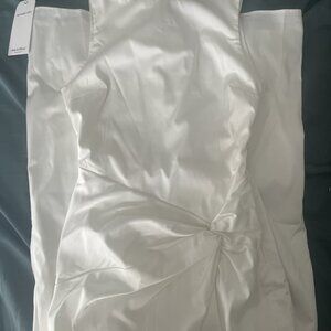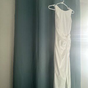 Elegant white maxi dress. Features a sleek design with a side slit. Perfect for formal occasions.