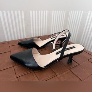 A sleek silhouette with a center seam and little kitten heel...
