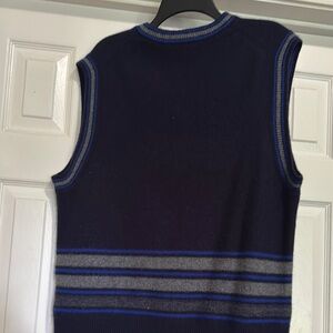 Coach Blue and Gray V-Neck Sweater with Stripe Detail
