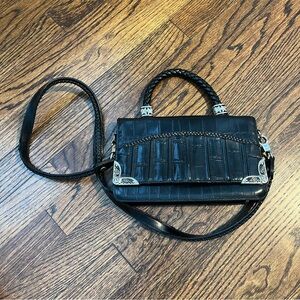 Vintage Marc Chantal M.C. Purse Black Croc Leather Handbag Silver Heart Preowned