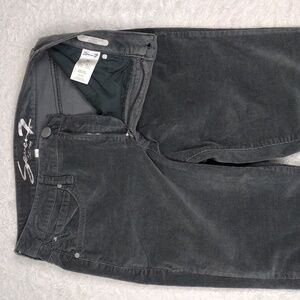 Seven7 Gray Women's Velvet Five Pocket Button Zipper Front Closure Ultra High Rise Skinny Leg Pant. 98% Cotton, 2% Spandex. Measurements approx. Flat Lay. Waist: 15, Rise: 11, Hips: 17.5, Inseam: 28". Size 10 Color May Vary Due To Lighting.