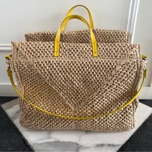 Clare V Tan Leather Shoulder Bag with Woven Texture