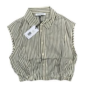 Revolves Weworewhat Cropped Sleeveless Popover Collar Lightweight Shirt Button Up Small Antique White Grey Stripe