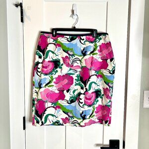 Talbots Bright Pink Navy Floral Preppy Pencil Skirt A-Line Sheath Career Sz 16W