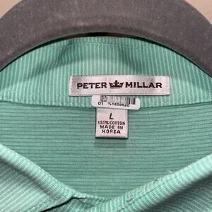 Peter Millar Men's Golf Shirt Green White Striped L Sporty Outdoor Athletic Wear