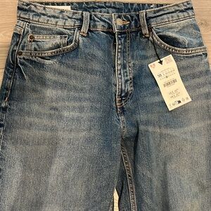 Brand new with tags. Never worn. Size 6 jeans from Zara. Some stretch. Medium wash straight leg jeans