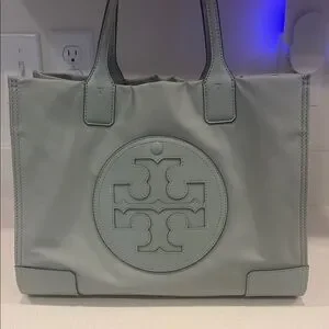 Tory Burch Seafoam Green Tote Bag with Iconic Logo