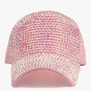 Sparkly Pink Rhinestone Bedazzled Beaded Baseball Hat Cap