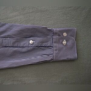 Suitsupply Navy Thin Striped Mandarin Collar Button Down Shirt (Size 38)