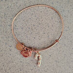 Alex and Ani Rose Gold Candy Cane Christmas Charm Bracelet Bangle