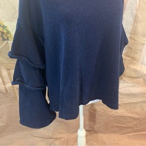 AG Goldschmied Chambray Cutout Ruffle Sweatshirt