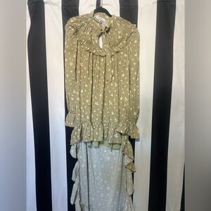 Vibrant crop top with lace-up front. Flared sleeves with intricate patterns. Perfect for a bold look.