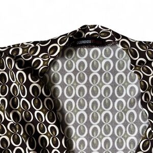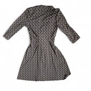Discover elegance with this stunning geometric midi dress. The brown and white pattern adds a sophisticated touch, perfect for any event.