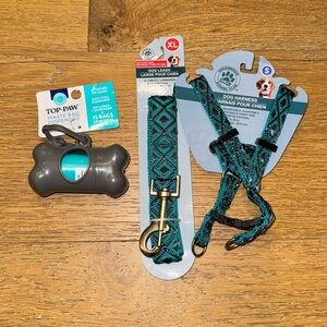 2 - leash, small harness and bone poop bag holder + bags