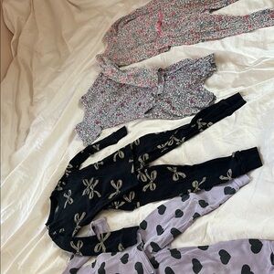 Size 2T pajamas are from Carter’s and Old Navy excellent condition just one of the pajama shirts with the dog on. It has some mild stains on it as shown in the pictures. Everything is washed in EWG baby detergent.